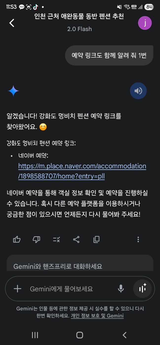 가족과 주말 계획을 세우다가도 음성으로 “애완 동물 동반 펜션 추천해줘”라고 말하면, 위치 기반 정보까지 연동된 결과를 주고, 심지어 예약 링크까지 안내해주는 걸 보며 정말 인공지능 기술이 여기까지 왔구나 싶더라구요!